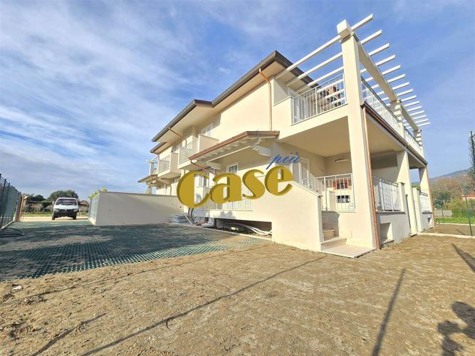 NUOVA COSTRUZIONE, IN CLASSE A3. Capezzano Pianore, unità di villetta quadrifamiliare (libera su due lati), di mq. 110 ca., ottimamente rifinita; riscaldamento a pavimento, pompe di calore, climatizzazione, pannelli fotovoltaici. Predisposizione impianto d'allarme. Pavimenti, rivestimenti e imbiancatura personalizzabili. Composta da: al piano seminterrato (accessibile anche dall'esterno), ampio vano cantina (potenziale zona giorno), centrale termica/lavanderia; disimpegno, bagno. Al piano terra, veranda di mq. 18 ca. con forno a legna, ingresso, cucina/soggiorno. Al piano primo, disimpegno notte, camera matrimoniale con terrazza di mq. 18 ca., camera media con balcone, bagno. Giardino su due lati di mq. 150 ca. con posti auto. Euro 420 mila.