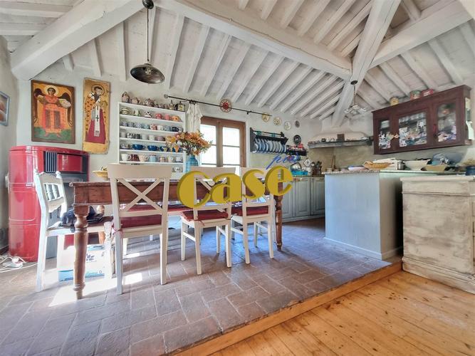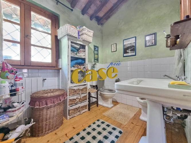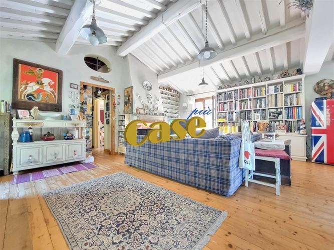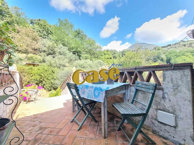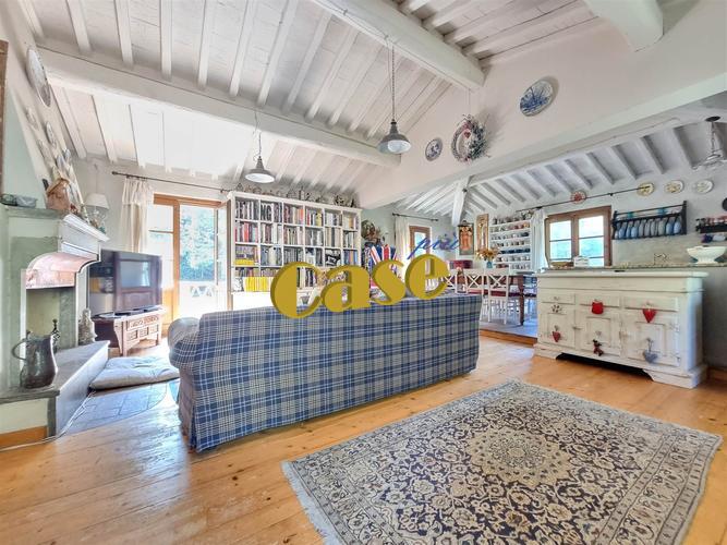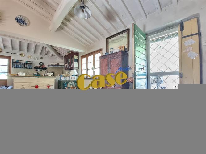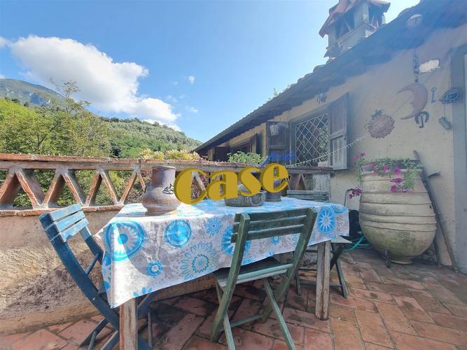 RUSTICO TUTTO SU UN PIANO CON GIARDINO. Colline di Camaiore, porzione di più ampio fabbricato al piano secondo ed ultimo, di mq. 110 ca., in stato di manutenzione abitabile, composta da: accesso tramite scala esterna, terrazza di mq. 10 ca., ampia zona giorno (openspace); cucina-sala con camino. Disimpegno notte, camera matrimoniale, cameretta, stanza armadi (eventuale terza camera); bagno con vasca idromassaggio, altro bagno con doccia. Quattro balconi. Giardino pertinenziale di mq. 350 ca., posti auto. Euro 219 mila.