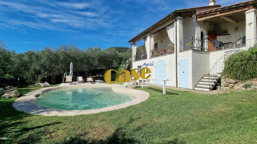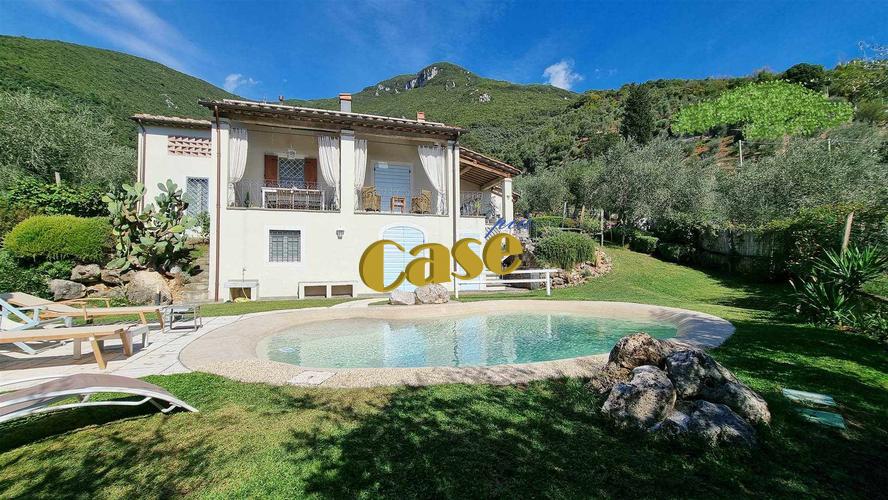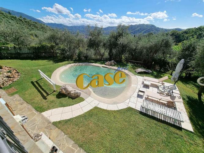 Colline di Camaiore, rustico libero su quattro lati di recente realizzazione, di mq. 130 ca., composto da: al piano (parzialmente) interrato, ampia taverna (con ingresso indipendente dall'esterno) composta da tre vani cantina adibiti a soggiorno, cameretta, bagno. Al piano terra, veranda con barbecue in muratura, ingresso, soggiorno con camino; cucina, disimpegno notte, camera matrimoniale, cameretta, bagno. Garage adibito a camera matrimoniale. Ottimamente rifinito, impianto fotovoltaico 3kw, predisposizione per aria condizionata, impianto d'allarme, piscina in resina di marmo ecocompatibile (biodesigner). Terreno coltivato ad uliveto di mq. 700 ca. Vista panoramica. Euro 690 mila.