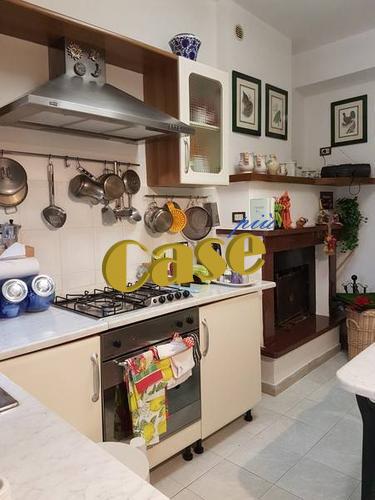 1) Al piano terra, cucina abitabile con termocamino, soggiorno, ripostiglio e bagno.