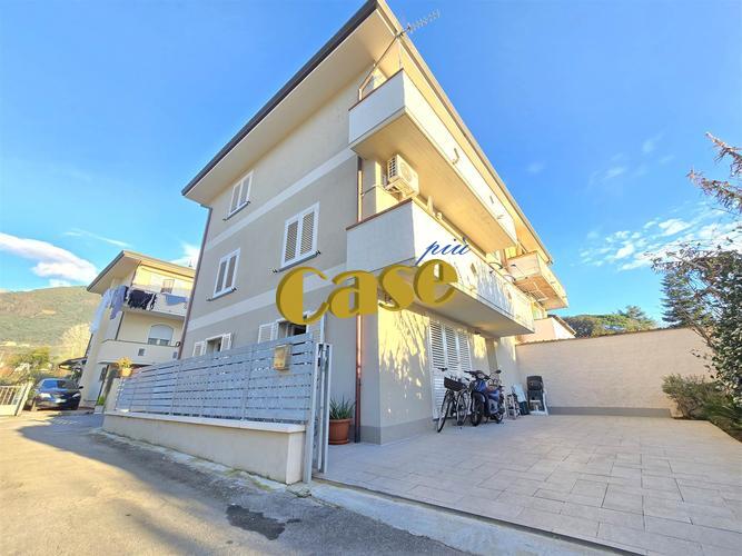 AMPIA VILLETTA IN PROSSIMITÀ DEL CENTRO, IN CLASSE A2. Camaiore, unità di villetta bifamiliare (libera su tre lati), di mq. 160 ca., adatta anche per due nuclei familiari, ottimamente rifinita (cappotto termico, impianto fotovoltaico 3,80 kWp con 10 pannelli, infissi in pvc a taglio termico, impianto di allarme), composta da: al piano terra, disimpegno d'ingresso, due ampi vani oltre al vano centrale termica (adibiti a cucina/tinello, wc, studi e/o palestra). Al piano primo, ampio soggiorno con balcone, cucina abitabile con camino e balcone, bagno con doccia. Al piano secondo, disimpegno notte, 3 camere matrimoniali (di cui due con balcone), bagno con vasca.